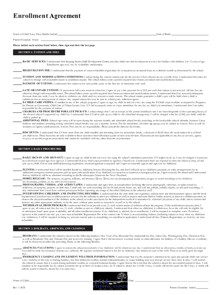 Get the free Enrolment Agreement FormDiscover