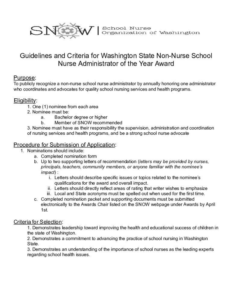 Get the free Non-Nurse School Nurse Administrator of the Year