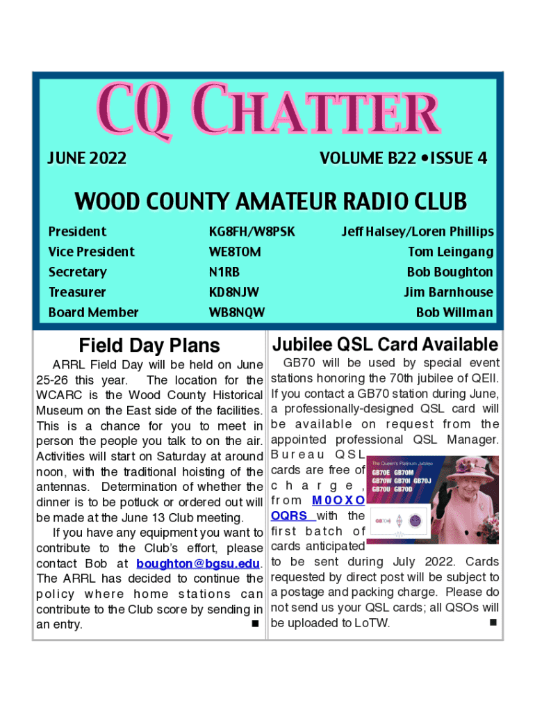 JUNE 2022VOLUME B22 ISSUE 4WOOD COUNTY AMATEUR RADIO CLUB