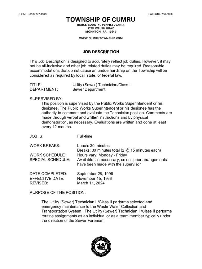 Job Description - Sewer is not the form you're looking for?Search for another form here.