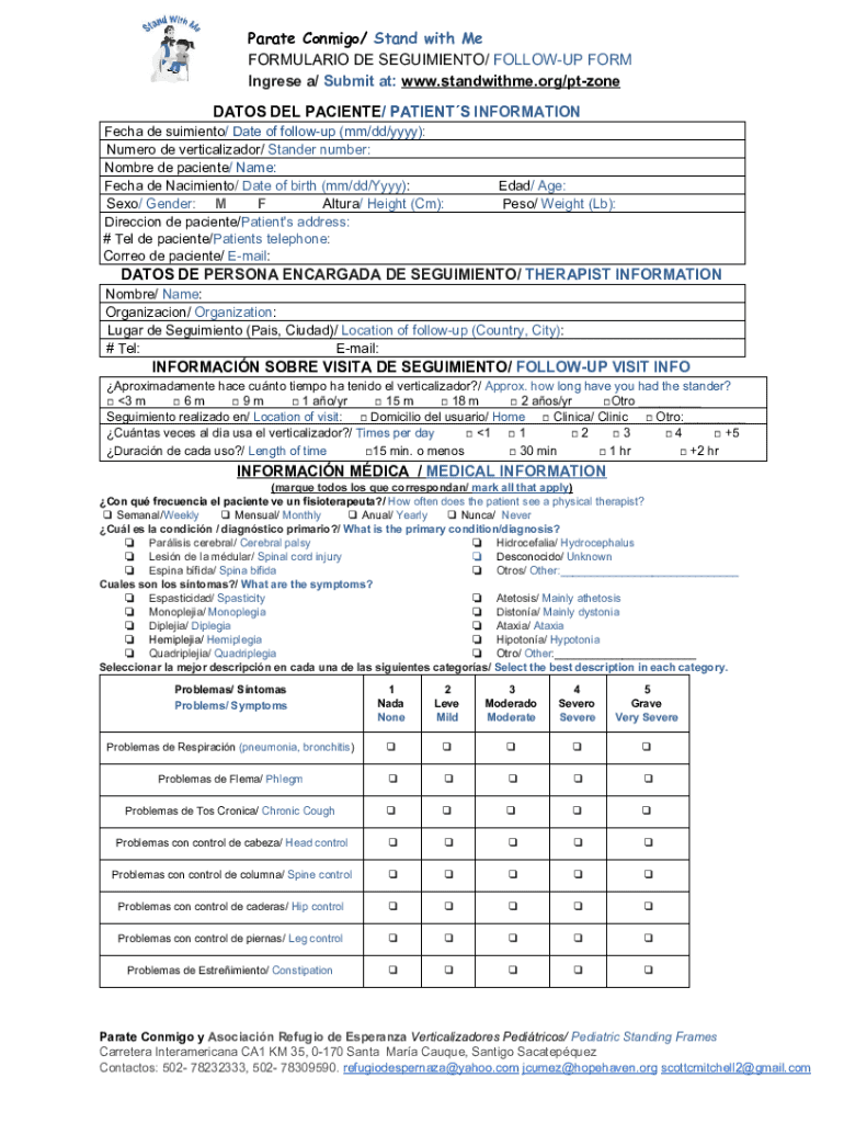 FORMULA RIO DE SEGUIMIENTO/ FOLLOWUP FORM