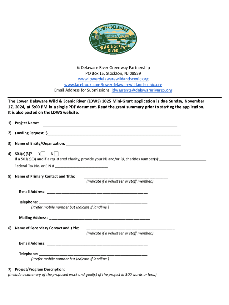Get the free 2025 LDWS Mini Grant Application.docx - Google Docs