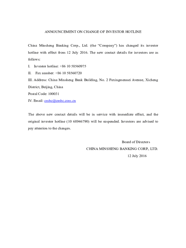 Get the free ANNOUNCEMENT ON CHANGE OF INVESTOR HOTLINE