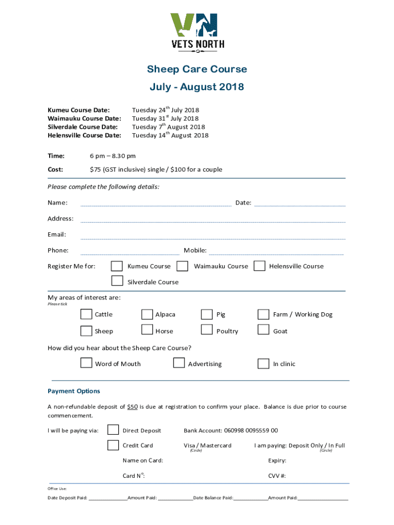 Get the free Sheep Care Course - Application Form June 2018