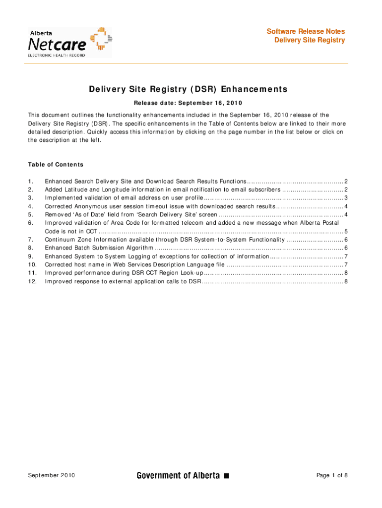 Get the free Delivery Site Registry
