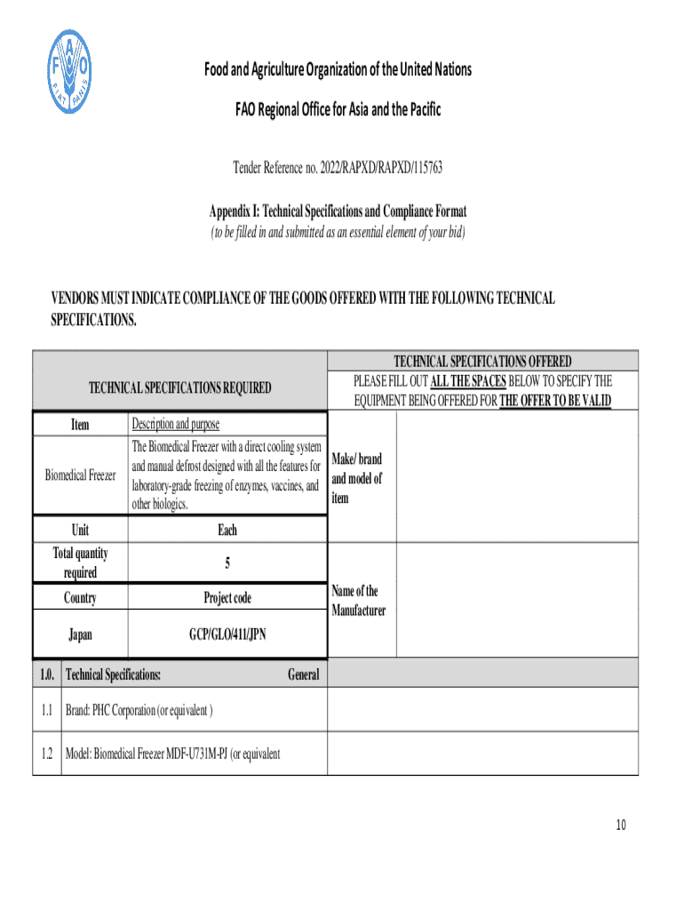 Food and Agriculture Organization of the United Nations FAO Regional Office for Asia and the Pacific Tender Reference no. 2022/RAPXD/RAPXD/115763 Appendix I: Technical Specifications and Compliance