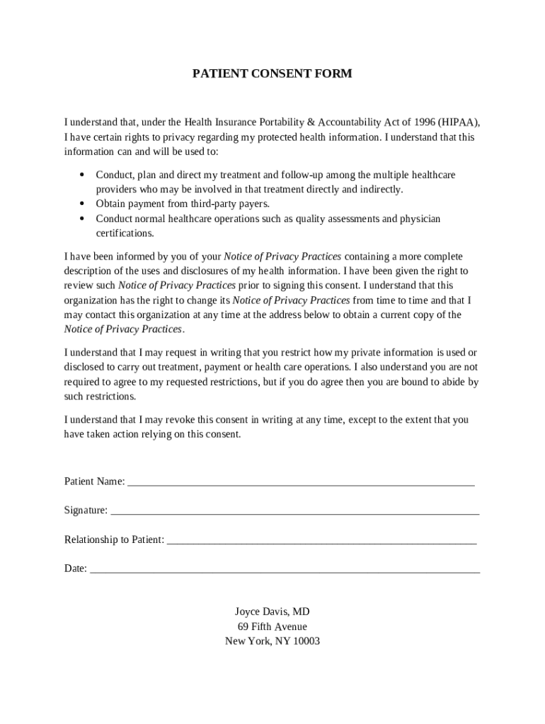 How to fill out HIPAA Patient Consent I understand that I have certain ...