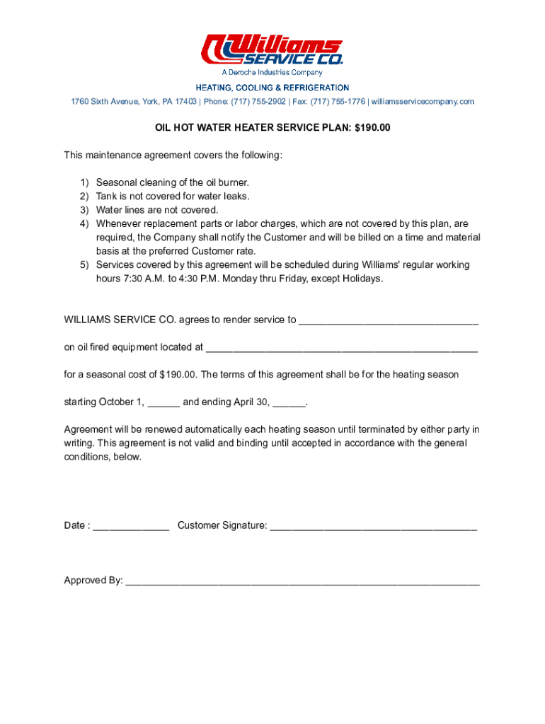 Get the free OIL HOT WATER HEATER SERVICE PLAN
