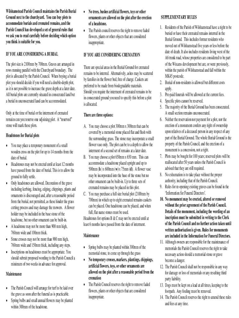 Get the free Wilstead Parish Council maintains the Parish Burial Ground next to the churchyard
