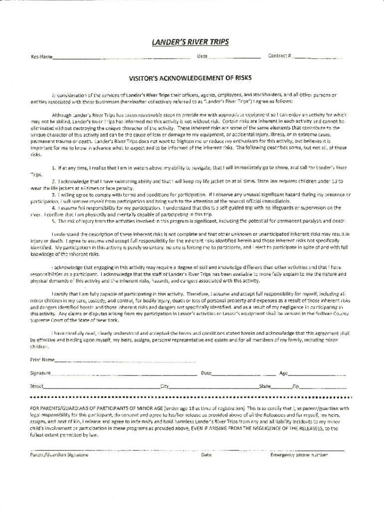Contract #Daters NameVISITOR, S ACKNOWLEDGEMENT OF Risks