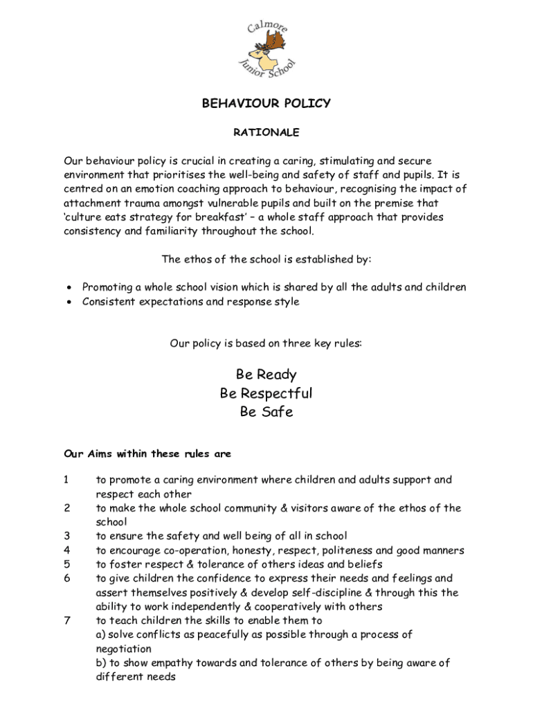 Get the free Behaviour Policy To promote Learning & Social Emotional ... - calmorejunior co
