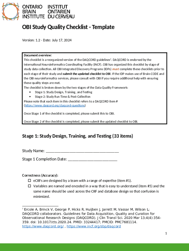 What is 05. OBI DQF Study Quality Checklist.docx Form?