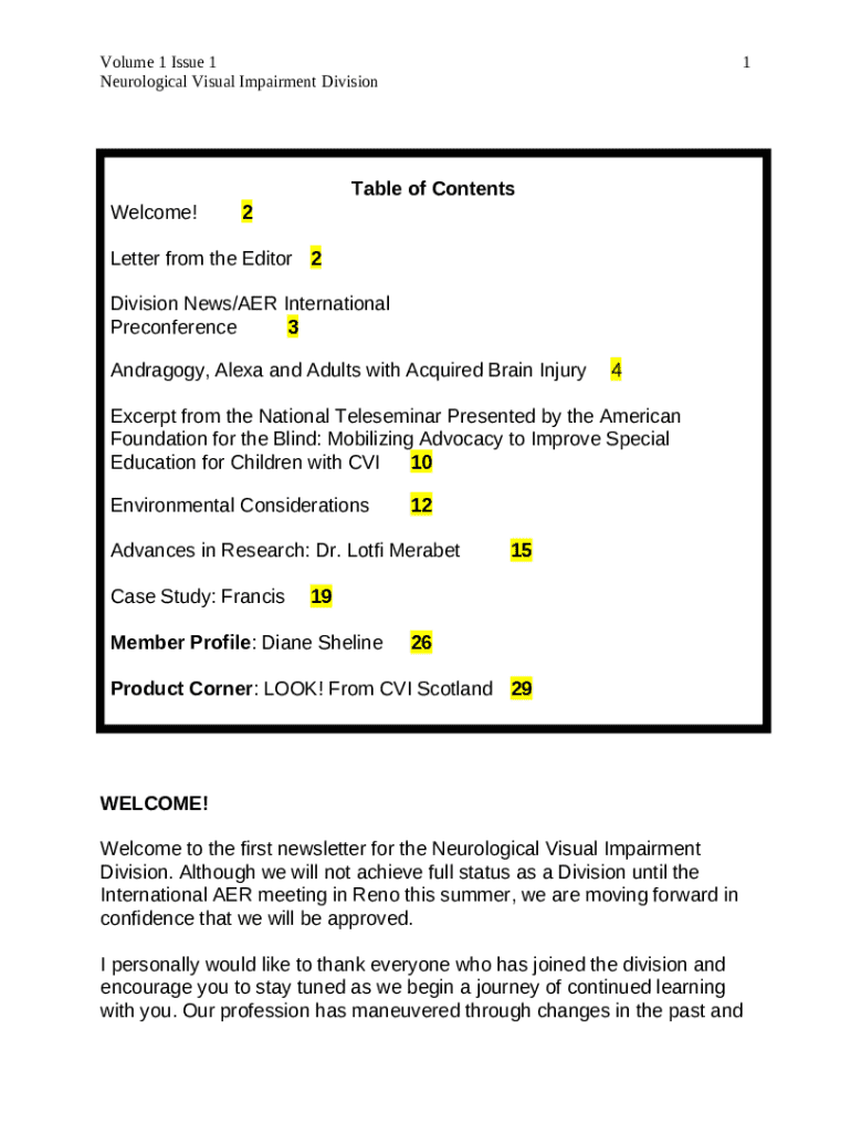 Managing neurological visual impairment proactively is essential for achieving optimal outcomes. Utilizing tools like pdfFiller can streamline the documentation and collaboration process, making it easier for users to edit, sign, and share the neurological visual impairment division form. This not only enhances communication among care teams but also empowers patients and their families to engage actively in their care strategies.