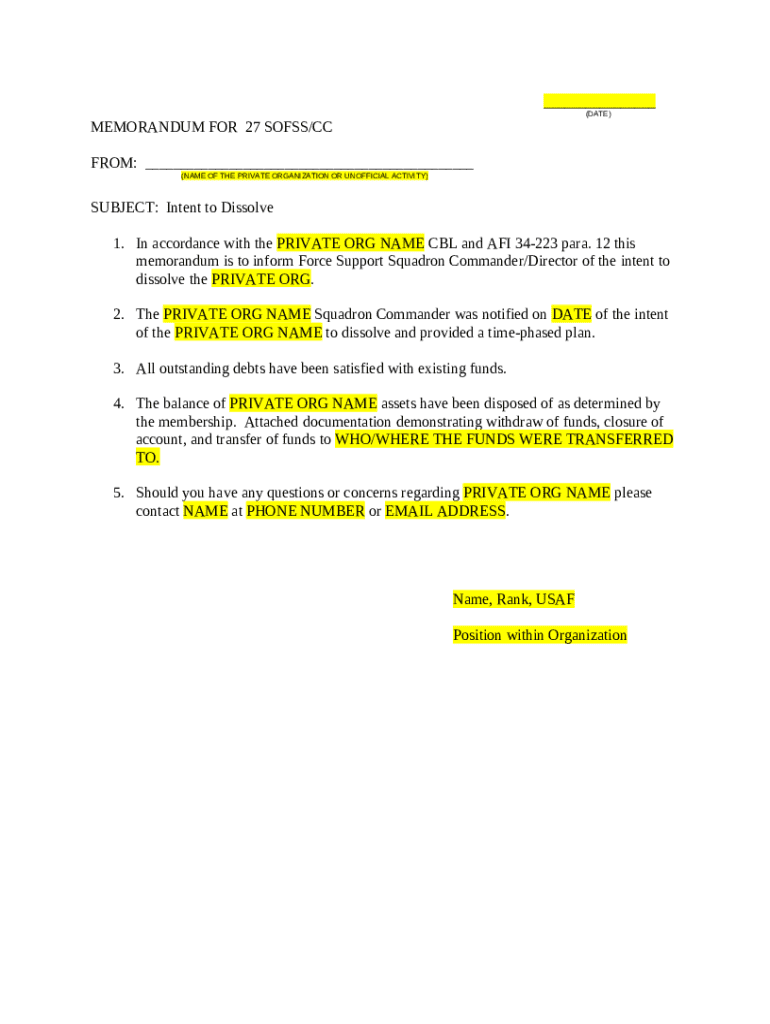Frequently asked questions about SUBJECT:Intent to Dissolve template