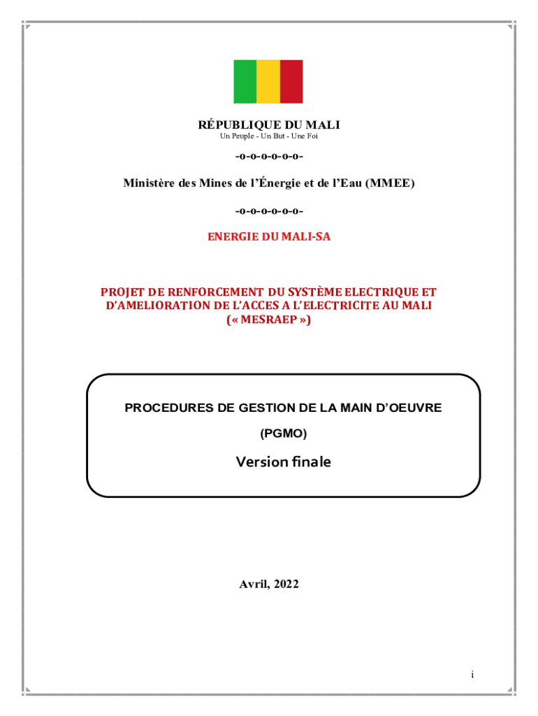 RPUBLIQUE DU MALI Un Peuple Un But Une FoiooooooMinistre des Mines de lnergie et de lEau (MMEE) ooooooENERGIE DU MALISAPROJET DE RENFORCEMENT DU SYSTME ELECTRIQUE ET DAMELIORATION DE LACCES A LELECTRICITE