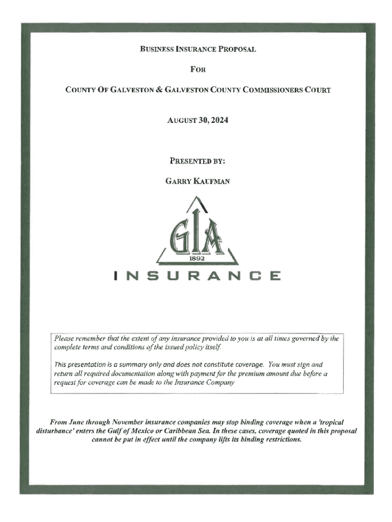 COUNTY OF GALVESTON & GALVESTON COUNTY COMMISSIONERS COURTAUGUST 30, 2024PRESENTED BY: