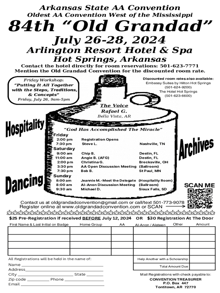 Get the free 84th Old Grandad Arkansas AA Convention