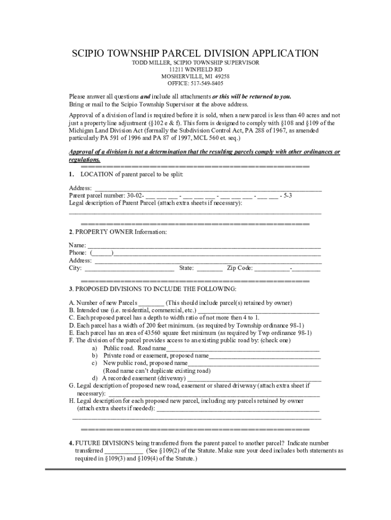 The Scipio Township Home Form is a critical document for property owners and tenants in Scipio Township. This form serves various purposes, including property registration, tax assessment, and compliance with local regulations. Understanding its importance helps individuals navigate the complexities of property management, ensuring their submissions meet township requirements.