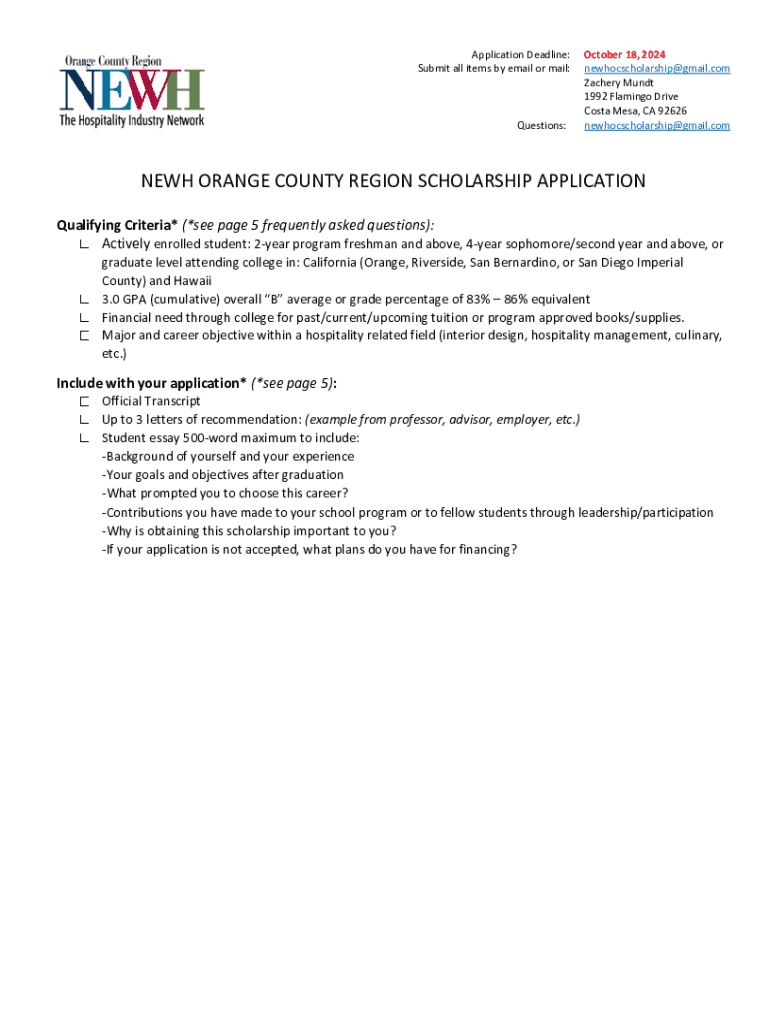 To apply for these scholarships, candidates must fill out the scholarship application form. Key instructions for crafting a compelling application include clearly outlining your career objectives, detailing your relevant experience in the hospitality industry, and even including letters of recommendation to strengthen your submission. Important deadlines are published on the NEWH website, and applicants should mark these dates on their calendars to ensure timely submission.