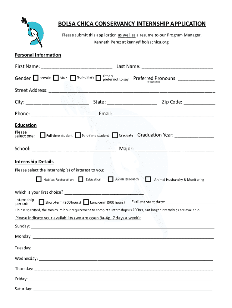 To fill out the forms for Bolsa Chica Conservancy, you typically need to provide details about your project, its potential environmental impacts, and proposed mitigation measures. Specific forms can be obtained from the conservancy's website.