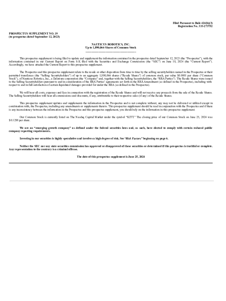 Get the free Nauticus Robotics, Inc. Form 424B3 Filed 2023-09-21