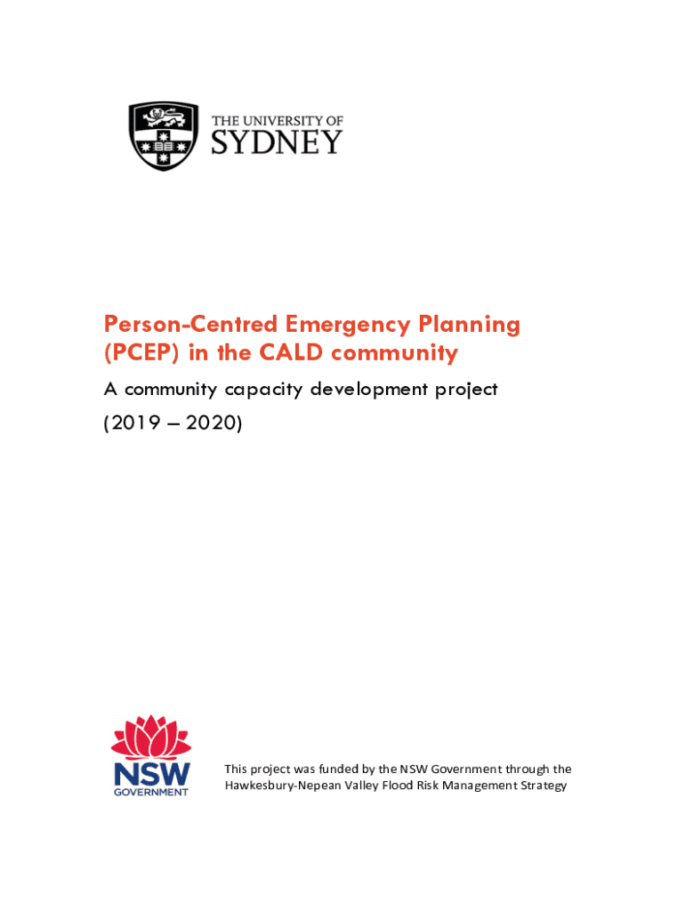 PersonCentred Emergency Planning (PCEP) in the CALD community A community capacity development project (2019 2020)This project was funded by the NSW Government through the HawkesburyNepean Valley Flood Risk Management StrategyProject Team Associate Professor Michelle Villeneuve, Centre for Disability Research and Policy, Faculty of Medicine and Health, School of Health Sciences, The University of Sydney Dr Tonia Crawford, Faculty of Medicine and Health, Susan Wakil School of Nursing and...