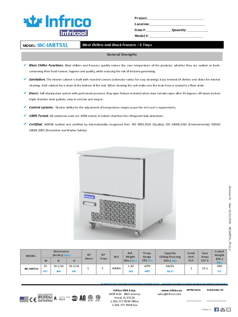 5 tray blast chillers are engineered with a range of technical specifications aimed at optimizing food safety and preservation. They typically operate within a temperature range of +90° to -18°, making them suitable for a diverse array of food types, from meats to pastries. Constructed with durable stainless steel, these chillers not only withstand the rigors of a busy kitchen but also maintain the hygiene standards required in food service.