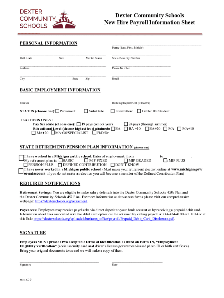 Get the free New Hire Payroll Information Sheet.docx