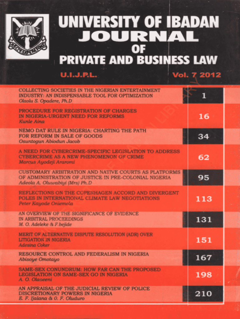 UNIVERSITY OF IBADAN U R N A L OF PRIVATE AND BUSINESS LAW Vol. 7 2012BR AR YOU. I.J.P.L. COLLECTING SOCIETIES IN THE NIGERIAN ENTERTAINMENT INDUSTRY: AN INDISPENSABLE TOOL FOR OPTIMIZATIONPROCEDURE