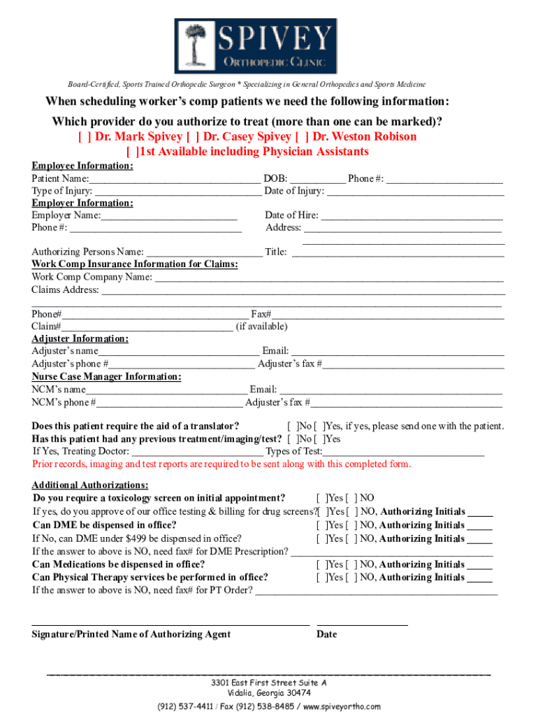 BoardCertified, Sports Trained Orthopedic Surgeon×Specializing in General Orthopedics and SportsMedicineWhen scheduling workers comp patients we need the following information: Which provider do