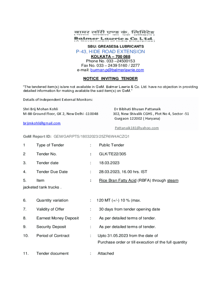 NOTICE INVITING TENDER