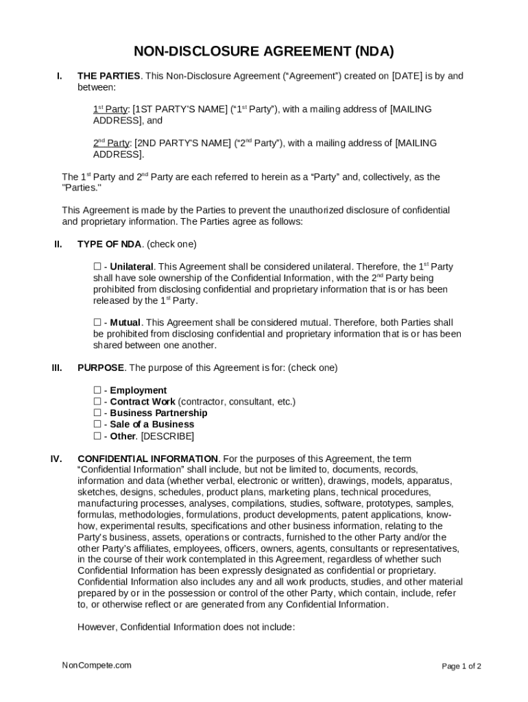 A well-structured NDA template contains various sections, each serving a specific purpose. The initial section defines what constitutes confidential information. It's important to clearly outline the types of information covered, whether they're trade secrets, marketing strategies, or proprietary technology. Following this, exclusions from confidential information should be noted, allowing for clarity on what is not covered by the agreement.
