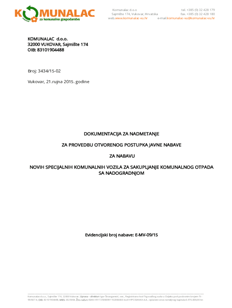 Get the free NOVIH SPECIJALNIH KOMUNALNIH VOZILA ZA SAKUPLJANJE KOMUNALNOG OTPADA