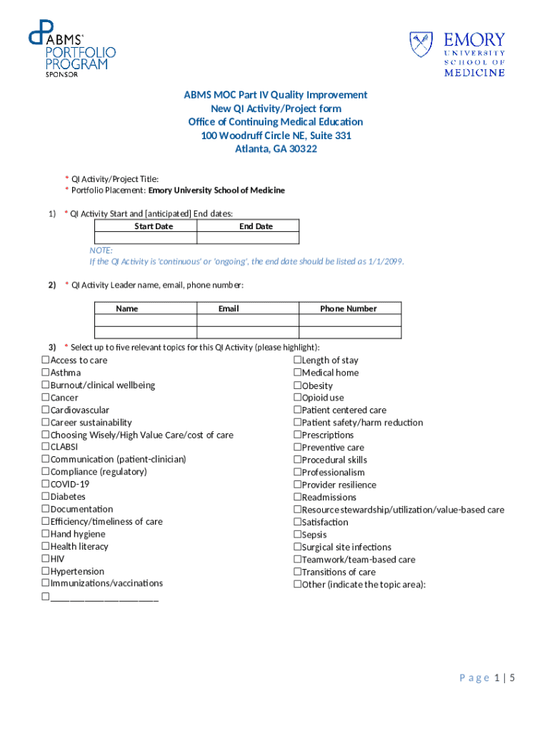 What is Earn MOC Part IV credit for your quality improvement ... - med emory Form?