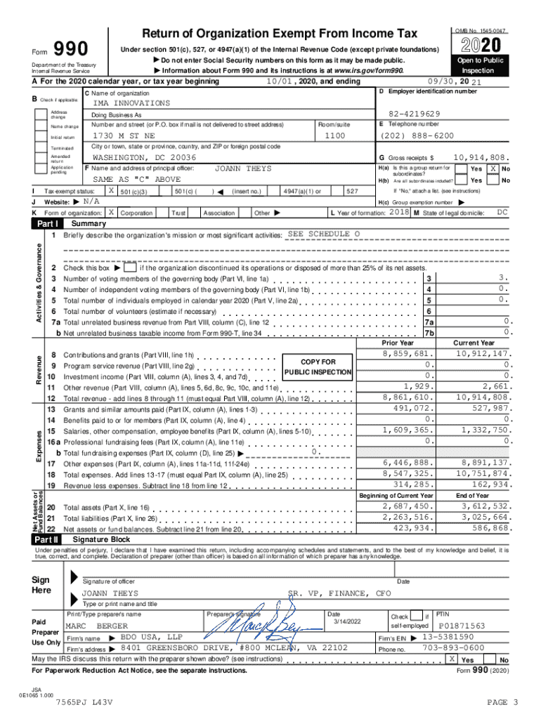 Information about Form 990 and its instructions is at www.irs.gov/form990.IMA INNOVATIONSAddress