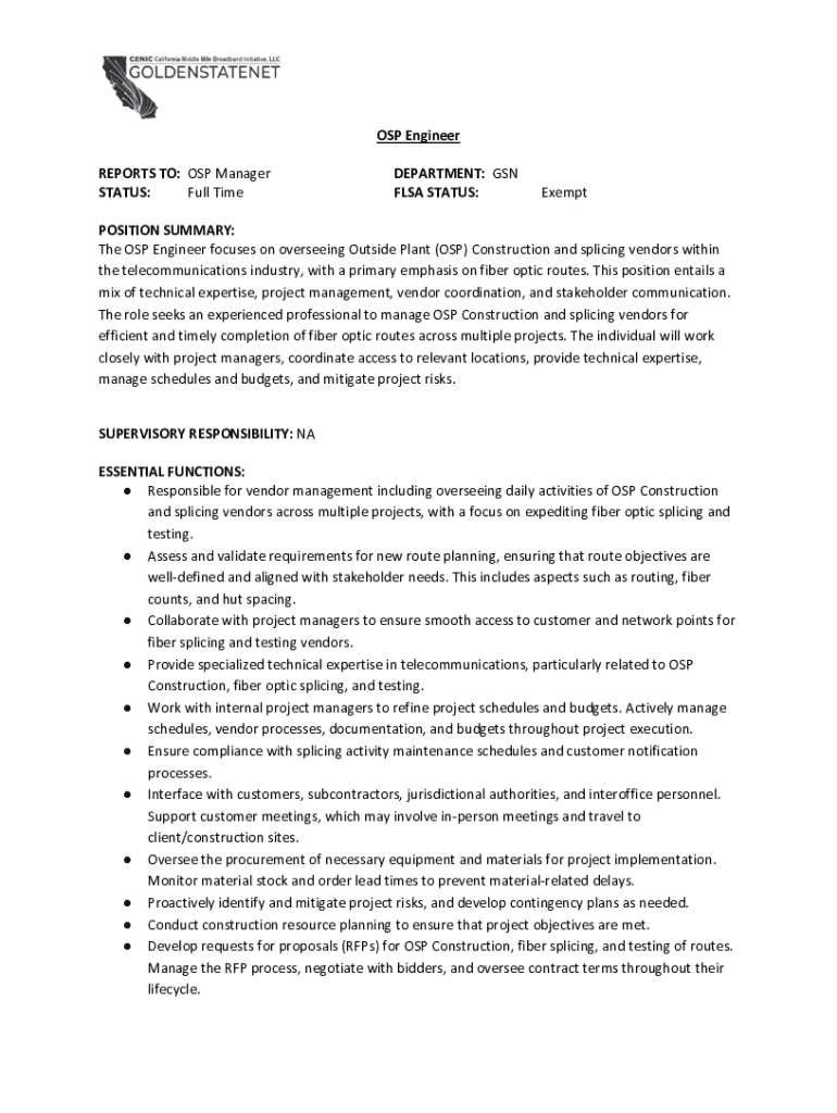 Get the free 5 Osp Engineer Job Description Templates and Examples