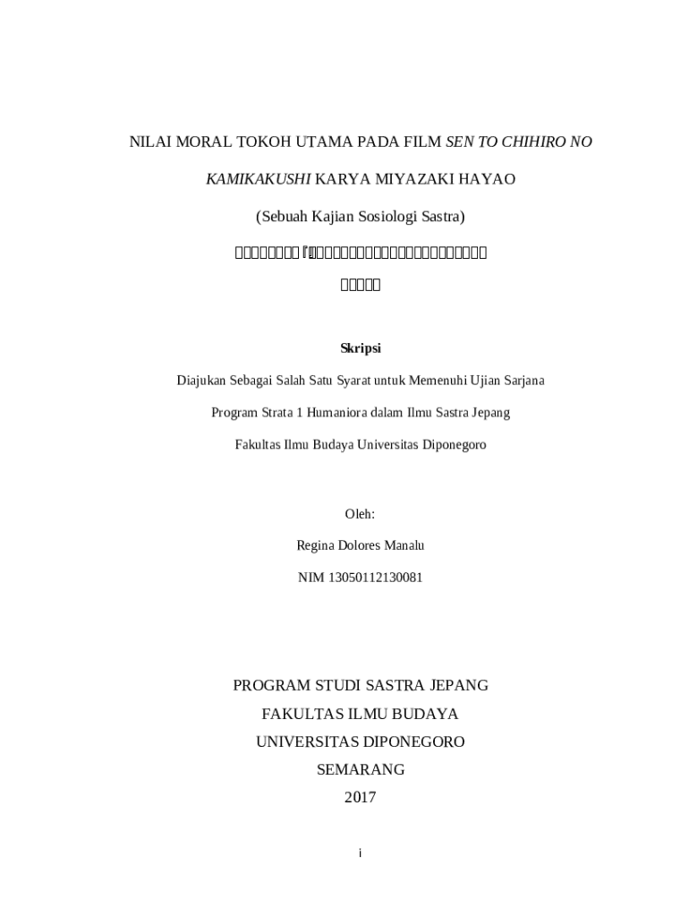 What is NILAI MORAL TOKOH UTAMA PADA FILM SEN TO CHIHIRO ... - eprints undip ac Form?