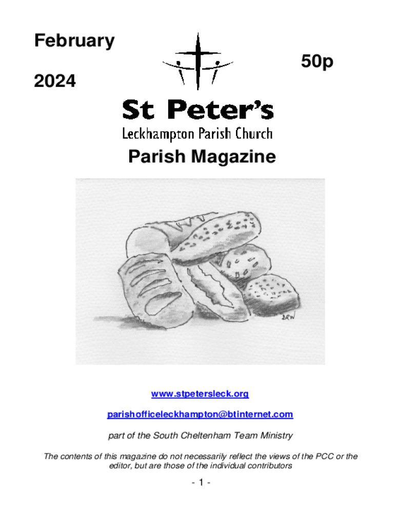 February 50p 2024Parish Magazinewww.stpetersleck.org parishofficeleckhampton@btinternet.com part of the South Cheltenham Team Ministry The contents of this magazine do not necessarily reflect the views of the PCC or the editor, but are those of the individual contributors1Our Vision Statement St Peters Church Leckhampton exists to love and worship God, to serve our neighbours and to pass on the faith in Jesus Christ.The Parish Prayer Loving God Open our eyes that we might see you
