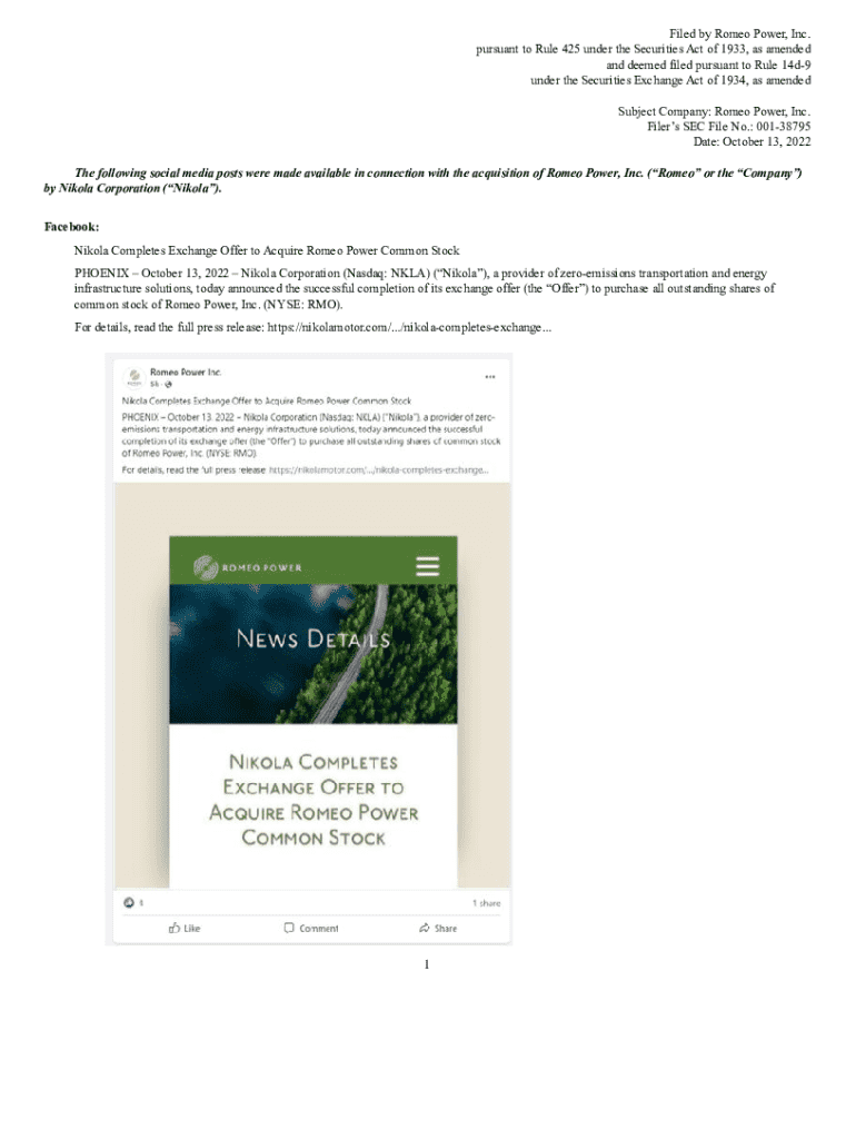 Get the free Nikola Commences Exchange Offer to Acquire Romeo Power