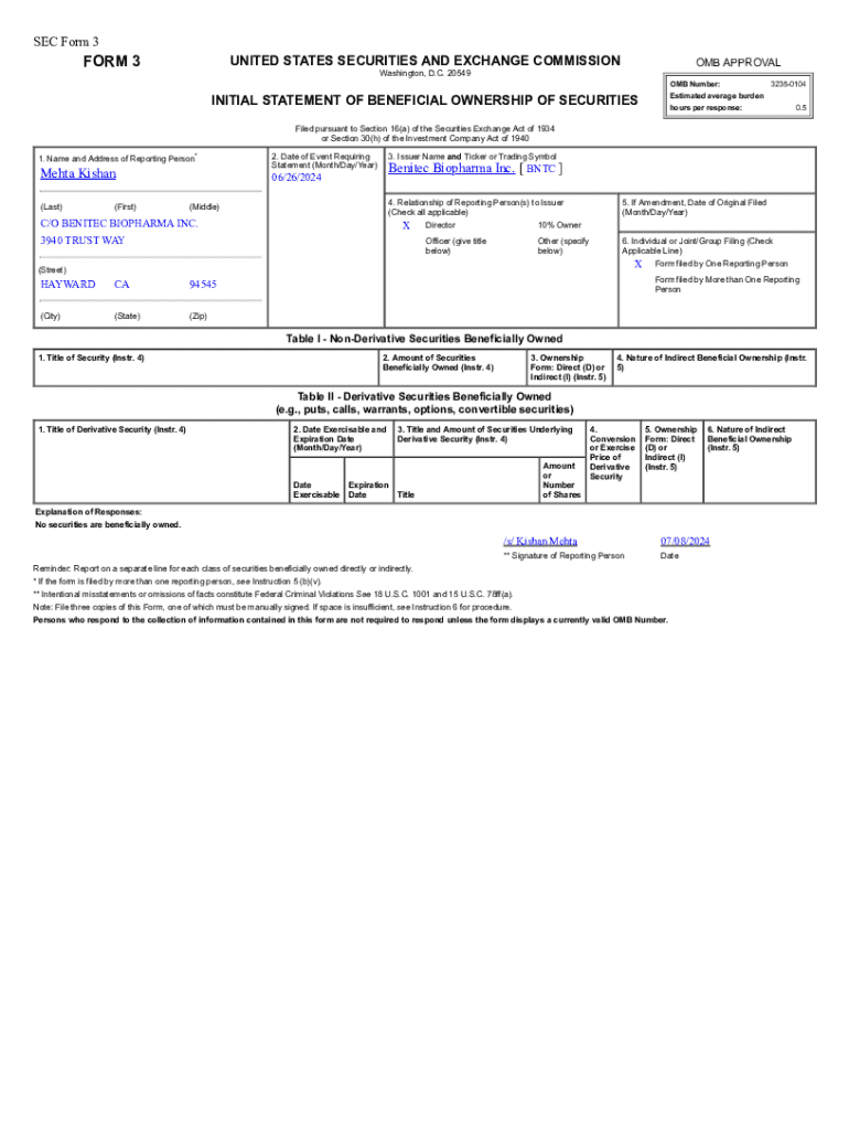 Various forms are associated with Co Benitec Biopharma Inc, each serving distinct purposes essential for different aspects of the company’s operations. Understanding these document types assists stakeholders in navigating through the complexities of biotech regulations and corporate administration effectively.
