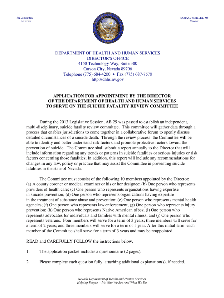Get the free Application for Appointment to Serve on Committee - suicideprevention nv