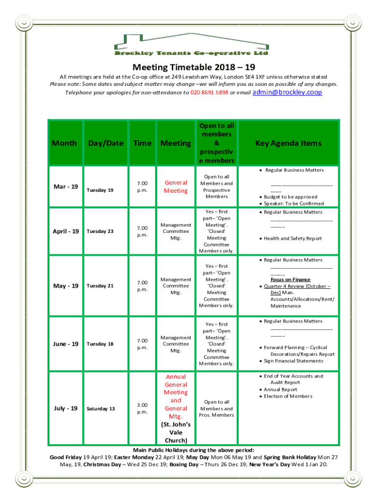 Frequently asked questions about the Brockley Tenants039 Co-operative Ltd form