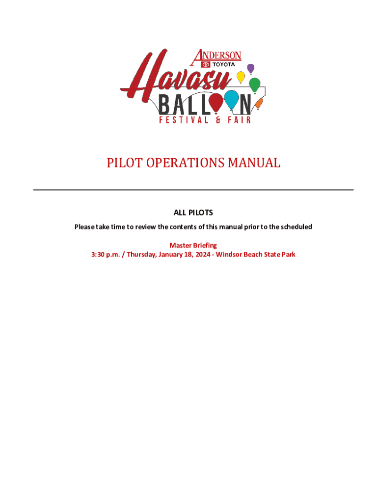 PILOT OPERATIONS MANUAL ALL PILOTS Please take time to review the contents of this manual prior to the scheduled Master Briefing 3:30 p.m. / Thursday, January 18, 2024, Windsor Beach State Parking