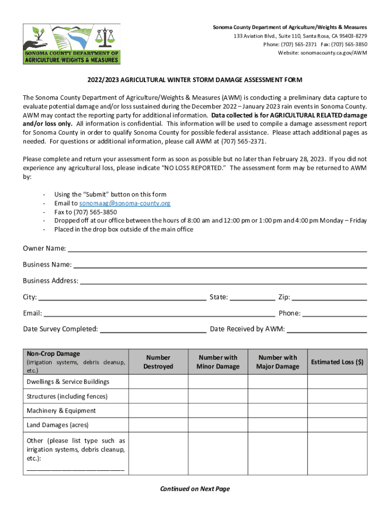 Get the free Sonoma County Department of Agriculture/Weights & Measures, 2022-2023 Winter Sto...