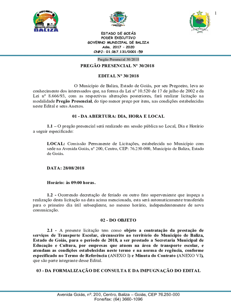 CNJ: 01.067.131/000159Prego Presence 30/2018PREGO PRESENCE N 30/2018