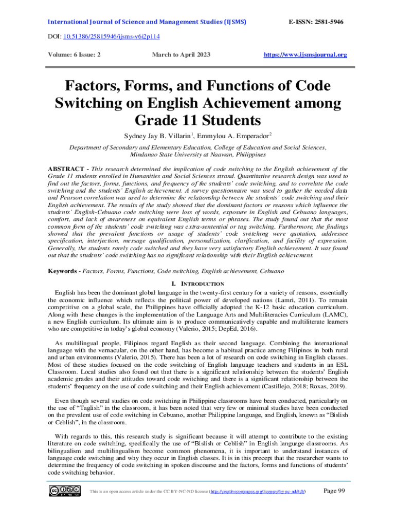 Get the free Factors, Forms, and Functions of Code Switching on English ...