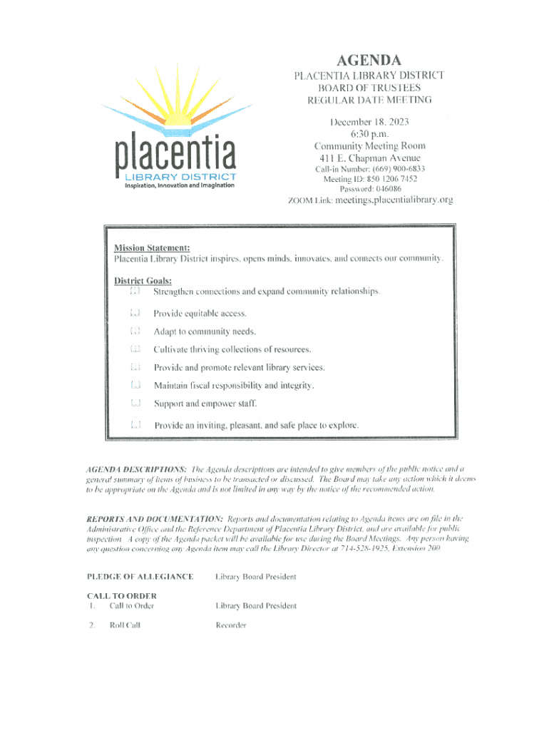Get the free Fund Balance Report through November 2023 for Placentia Library District Fund