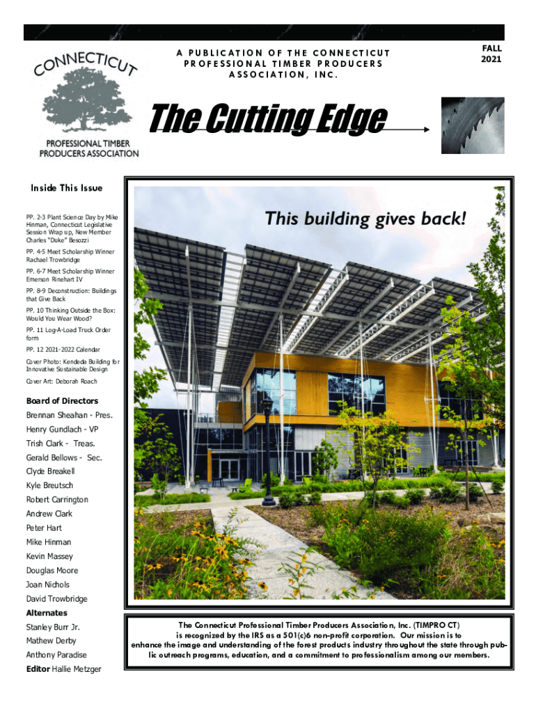 A PUBLICATION OF THE CONNECTICUT PROFESSIONAL TIMBER PRODUCERS ASSOCIATION, INC.FALL 2021The Cutting Edge Inside This Issue PP. 23 Plant Science Day by Mike Binman, Connecticut Legislative Session
