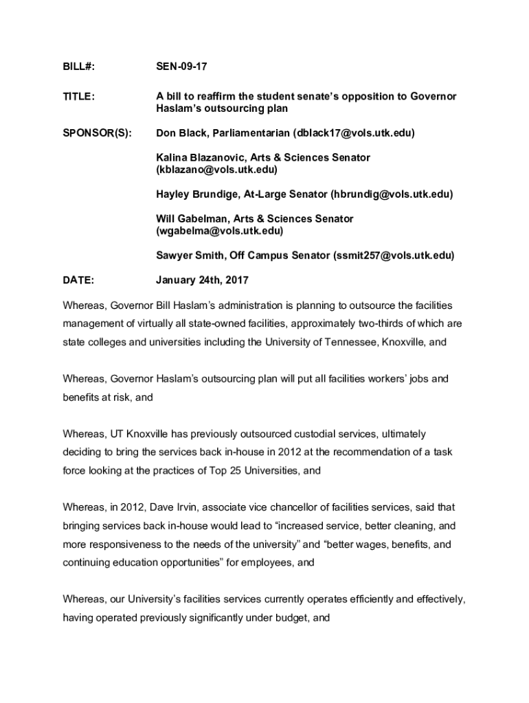 Get the free SEN-09-17 A bill to reaffirm the student senates opposition to Governor Haslams outs...