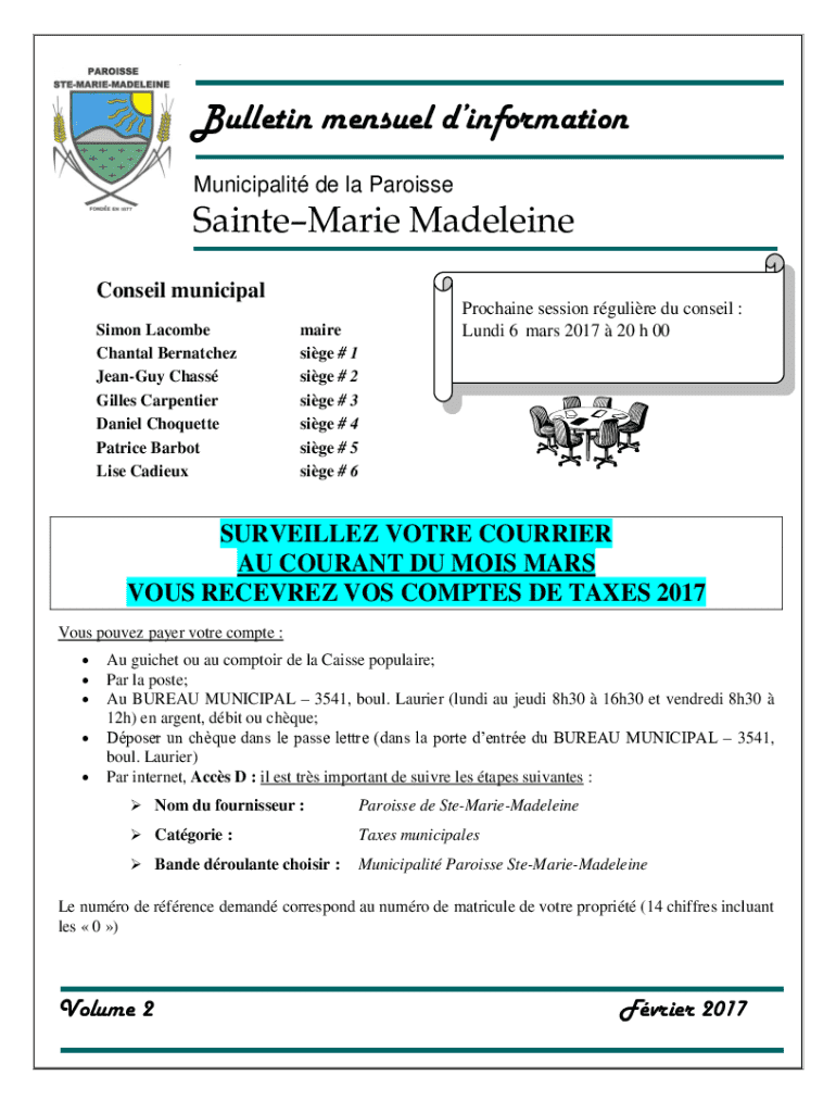 Obtenir le gratuit Bulletin mensuel d'information - Municipalit de la Paroisse